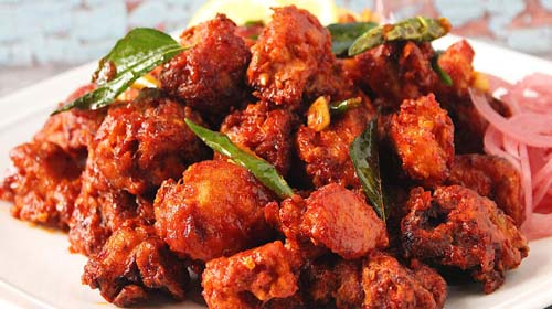 Chicken - 65, Chicken: Chilli, Manchurian, Pepper, Lollipop, Varuval, Chintamani, Mutton Mysore.